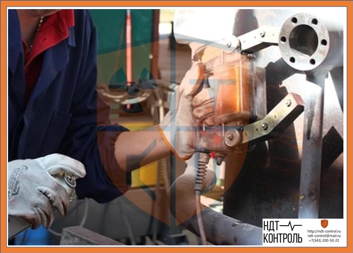 При магнитографическом методе происходит намагничивание определенного участка сварного шва и околошовной зоны. Технология контроля включает в себя следующие операции:
